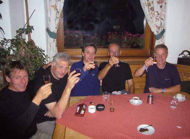 show the mountaineer the superior power of the mountains - Trip members were two Marks, Martin, Bruce, Peter and David. Further photographs are available here. A DVD of the expedition is available to help those planning to go to the Brenta. |