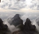 The Brenta group is the most westerly of the Dolomites and forms a lofty broken ridge stretching a distance of 12 miles. The chain of peaks is separated by a wide gap at its centre where the Groste Pass gives easy access from one side to the other. This is where the expedition started. To the south of the Pass the terrain is much shattered, decked with numerous bold rock towers and spires, splendid cliffs and all enclosed by small glaciers on the western side. It is through this amazing territory that our route was planned along a series of protected paths or via ferratas that go under the name of the Bochette Way. Scenically the Brenta is undoubtedly one of the mightiest mountain areas in Europe and the capacity to link a series of via ferratas in a hut to hut traverse of a mountain range is unique in the world. Climbing the Brenta started in the 1860's and by 1899 the final major peak, the incredible spire of Campanile Basso was conquered. From the 1930's people began to widen where necessary the horizontal rock ledges hewn out of the cliffs by wind and weather and equip them with pegs, ladders and wire ropes as a protected high level route. Over time the particular installations and connections became more and more exciting and now the Brenta is one the most popular areas in the whole of the Alps, climbers being drawn under the irresistible magic spell of the Bochette Way. |