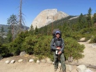 Day 1 Happy Isles to Sunrise High Sierra Camp Total distance of day 19 miles Total ascent of day 6000ft After a good night's rest at the Backpackers Campsite in Yosemite, I set out on the road to the Trail Head. The sign at the beginning of the John Muir Trail was photographed and then it was "heads down" for the next two hours, whilst climbing to the top of the Nevada Falls. The pack felt heavy but I was managing. Having climbed Half Dome on a previous occasion, I carried straight on at the junction of the path towards Sunrise Creek. At this point I made the only navigational error of the JMT when I carried on up the Clouds Rest path for some time before realising my mistake and retracing my footsteps. It was a long day and it was after 6 in the evening before I made the Sunrise Sierra Camp and set up my tent. |