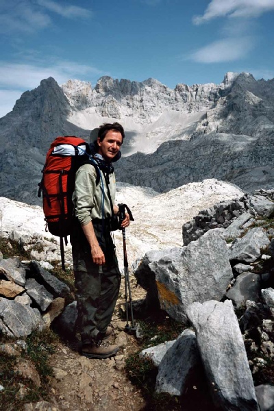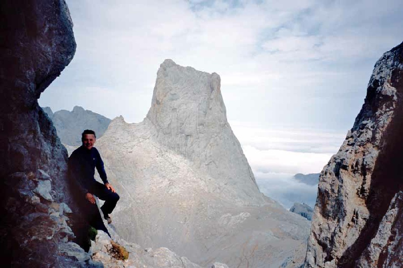 west to east, taking in the best it has to offer. Stop- The guide "Picos de Europa walks and climbs" by Robin Walker was used to help plan the route. A series of multiday walks are outlined at the back of the book, the inspiration for the route being the "Traverse of the Three Massifs". Although consulted at the planning stage, the lack of detail and maps meant the guide was not found to be very useful on the trip. The book was first published in 1989 and has not been radically updated since then. Up to date route information on path conditions was gleaned from the wardens of the refuges. Trip members were Peter and David. Further pictures are here. A DVD of the expedition is available for those planning to walk in the Picos de Europa. |