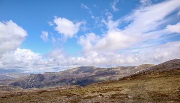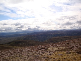 The route was split into three fine Munros east of Glen Tilt and two peaks to the west of the the Glen. Access to the three linked peaks is along excellent paths and tracks. However, the descent into Glen Tilt and the route to the western pair of Munros is pathless and very tiring through heather and tussocks of grass. The combination of the ascent of the peaks on both sides of Glen Tilt makes for a long day but as Steve Fallon says on his website it is perfectly possible for a fit walker to bag all 5 Munros in a day. This walk was going to be my last been challenge walk of my Munro compleation round and I was looking forward to this challenge. The first peak of the day was Carn Liath whose badly scarred path up its shoulder