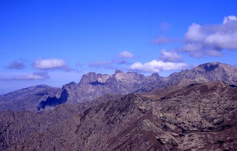 Stage 11Refuge d'Usciolu to Refuge d'Asinau The rugged Arete a Monda was followed as it lead us over a series of rocky ridges and notches to open beech woods. After leaving the woods, the walk across the relatively flat Plateau du Cuscione gave a welcome relief from the hard rocky surfaces we had encountered on most of the other parts of the GR20. Across the plateau, the climb to the top of Monte Incudine started with a series of bouldery wooded slopes then open area of scrub and then finally bare rock. The path rose steadily along the crest to the summit, where we enjoyed the view and tried to work out the route around the spires of the Aiguilles de Bavella across the valley. The descent to the Refuge d'Asinau was long and slow but thankfully, much to the relief of our knees, it turned out to be the last big GR20 descent. Time : 8 hours |