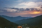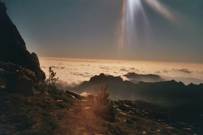 Stage 13 Refuge d'l Paliri to Conca In order to make sure we arrived in Conca with plenty of time for the bus, we set off before dawn, headtorches at the ready. The intensity of the mountain scenery continued until almost the end of the walk and it was only after we were safely on the road in Conca that you could feel your body relax without the worry of a twisted ankle or worse. The day started with a glorious dawn, as we made our way through forest. Even at this stage there was still some climbing, sometimes on bare rock or sometimes on a stony path. Eventually, the narrow cleft of the Bocca d'Usciolu came into view. It was quite an emotional moment to come through the cleft and leave the mountains behind and see the village of Conca come into view. The path lead down through gnarled cork oaks to the last GR20 red and white flash and the road junction into Conca. Time 6 hours |