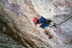 Stage 1 Calenza to Refuge d'Ortudi u Piobbu After a good nights rest in the Muncipal Gite d'Etape, we set off in the dark through Calenza heading for the red and white flashes of the GR20. As we started to climb above Calenza, the sun rose and we came across the first of the many laricio pines that we would pass on our way to Conca. The path rose steadily as we acclimatised to the weight of the packs on our backs. We were now becoming accustomed to the ways of avoiding potential scratches from the maquis, a mixture of cistus and spiney broom plants. The path was well graded and marked at all the crucial turning spots. We soon got into the habit of stopping to make sure we were following the flashes if we had not seen one in the previous 3 minutes. Our first stop, the grassy gap at the Bocca a u Salta, was reached after about 3 hours. At this point we were caught up by a group of Germans who became companions for the rest of the trip. The next section of the route included the first easy scrambling. Loose wires were provided for assistance but were not needed. The uphill scrambling lead to the lunch stop at the Bocca a u Bassiguellu. The final section of path to the Refuge includes a rugged little climb but nothing too steep. Our decision to camp on the GR20 was made as we waited at the Refuge for the Warden to appear. A group of very loud and rather offensive walkers arrived at the refuge and proceeded to grab all the spare beds without asking the Warden as per instructions on the wall. Tenting it was then! Time : 8 hours |