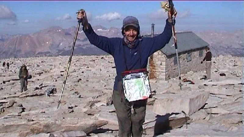 Day 17 Guitar Lake to Whitney Portal Total distance of day 17 miles Total ascent of day 3200ft I started the ascent at about 3:00 in the morning and followed the line of head torches off into the distance. The day had dawned by the time I had reached Trail Junction. At this point the rucksack was left and the final 1000ft of climbing was accomplished with a great feeling of lightness. The summit was reached and Jeremy and Jim were there as well to take my picture. The views from the top were astonishing particularly looking off into the north where I had come from all those days before. After signing the visitors book and taking a final panoramic shot of the view I started the descent. And what a descent with 2000ft of switch backs before the gradient levelled out somewhat for the remaining descent to the final destination, the cafe at Whitney Portal. The trail was complete after some of the most memorable days of my life. The practicalities of getting back to San Francisco then loomed large in my thoughts but I need not have worried since a lift with Jim and Jeremy was offered to a hotel in Mammoth Lakes and then onto a bus bound for Reno |