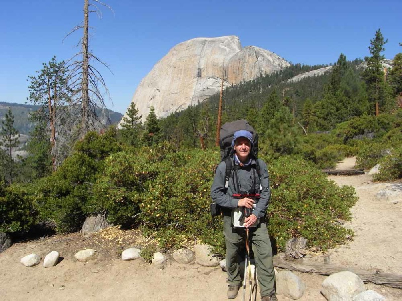 Day 1 Happy Isles to Sunrise High Sierra Camp Total distance of day 19 miles Total ascent of day 6000ft After a good night's rest at the Backpackers Campsite in Yosemite, I set out on the road to the Trail Head. The sign at the beginning of the John Muir Trail was photographed and then it was "heads down" for the next two hours, whilst climbing to the top of the Nevada Falls. The pack felt heavy but I was managing. Having climbed Half Dome on a previous occasion, I carried straight on at the junction of the path towards Sunrise Creek. At this point I made the only navigational error of the JMT when I carried on up the Clouds Rest path for some time before realising my mistake and retracing my footsteps. It was a long day and it was after 6 in the evening before I made the Sunrise Sierra Camp and set up my tent. |