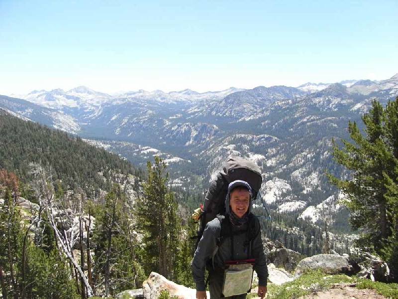 The John Muir Trail The John Muir Trail, named after the famous early environmentalist, runs along the spine of the Sierra Nevada range of mountains in northern California. The route stretches 211 miles from the Happy Isles trailhead at Yosemite to the summit of Mount Whitney. Most people only tackle sections of the trail, mainly in the north, where entry and exit are easiest. The northernmost sections from Yosemite are the most popular and therefore most crowded. The beautiful Sierra Nevada were referred to as the "Range of Light" by John Muir, and contain an incredible diversity of scenery. This is many peoples' favourite hike anywhere in the world. The trek is of varying heights, taking between 2- The trail reaches 4,421m at the top of Mount Whitney, and averages a bit over 3,000m. The excellent guide, "The John Muir Trail" by Alan Castle, was used for the expedition and is highly recommended. David did the trip as a solo expedition. Further pictures are here. A DVD of the John Muir Trail is available. | |