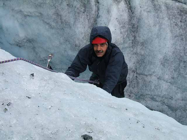 Day 1 Ice skills practice - The old rack and pinion railway was taken from Chamonix to the edge of the Mer de Glace. The descent to the Glacier consisted on a series of steep ladders and once onto the ice, crampons and ice axes were made ready for some practice. Crevasses were climbed in and out of and some steep ice climbing was attempted. |