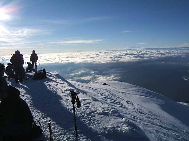 the ascent. We left the hut at about 2.30 am to join the stream of head torches snaking