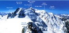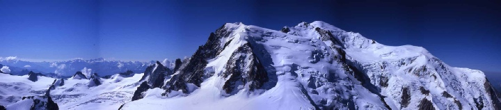 Mont Blanc, the highest summit in Western Europe at 4807 metres. It towers over the Alps and provides spectacular views from the summit. Climbing Mont Blanc is one of the great challenges in the Alps and a reasonable level of fitness and adequate acclimatisation is required. The trip was organised through KE adventure travel in Keswick and consisted of one ice skills practice day, 3 days acclimatisation followed by a 2 day ascent and descent of Mont Blanc. Trip members were Anoosh and David. Guide for the summit days : Robbie Fenlon Further photographs are available here. A DVD of the expedition is available for those planning to climb Mont Blanc. |
