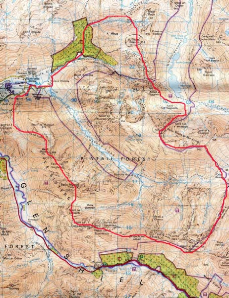 Starting point : Lundie, Loch Cluanie GR 145103 | |||