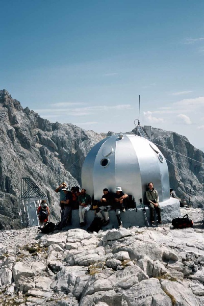 we arrived to see the West Face of El Naranjo bathed in sunshine - The evening had an added dimension of an unfolding epic high up on the West Face of El Naranjo, which was eventually safely resolved. Food at the refuge was excellent and the canteen was full of talk of exploits on the rock faces being planned for the next day. Time 7 hours |