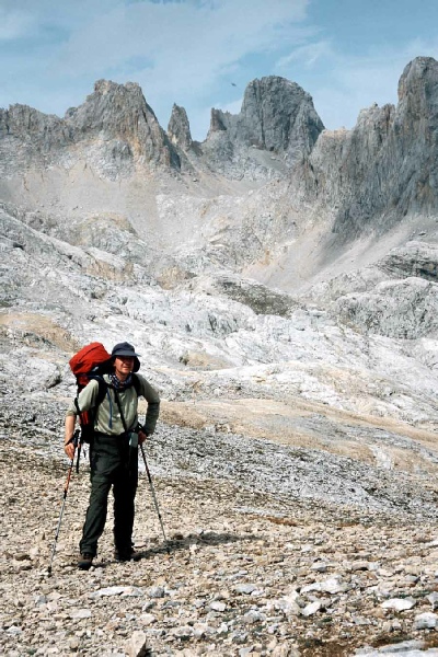 The Picos de Europa rear up like a great wall behind the Bay of Biscay Coast, dividing the hot plains of Castille from the green and gold country of Cantabrica. The mountains are modest in terms of altitude but form the largest single mass of limestone in Europe. A walk across the Picos has been on the "to do" list for a number of years and was finally completed in September 2006 as a 9 day expedition. The walk was put together to cover as much as possible of the range, crossing from