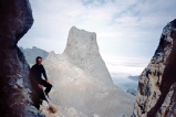 Stage 7 Urriellu- The path from the refuge winds its way around all the rock faces of Naranjo de Bulnes so it was a great opportunity to pick out potential rock routes for a future visit. The route climbed towards the Colla de Celada then steeply up scree to Colla Bonita. At this point David came very close to loosing his beloved rucksack down 1000ft of scree when it launched itself from a resting position and was only stopped by a skilful rugby tackle before picking up full descent speed. After an abortive attempt to find the descent route down the Valle de Las Monetas, it was decided to change the plan and head down to the Hotel Refugio Odriozola. Again the descent route did not look problematic from the map but we were in for a surprise. The route via the Coteras Rojas and the Canal del Vidrio was rough limestone country and very pleasant. However, the descent down to the Minas de Las Madforas turned into a bit of a horror story. The path entered a gash in the cliffs, partly natural and partly mined. The route was not clear but we carefully made our way down a ledge towards the bottom. The route is marked on the map as a path and had at one point had wire guides but is now in a very dangerous state of repair. Loose rock abounds and the rock faces adjoining the path are very fractured. The guide book makes no mention of the present dangers faced in this area. It was with great relief that we finished our descent of this section Our difficulties for the day were still not over as a dense mist then formed to hinder our navigation to the refuge. Eventually a building loomed out of the mist as a most welcome sight. The Hotel - Time 10 hours |