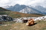 Stage 3 Refugio de Vegaredonda - A good path lead from the refuge past a series of huts at La Rondiella. The walking was pleasant contrast from the hard rock of the previous day as we crossed rich flat meadow pastures. A track was joined at Vega La Piedra and followed to the entrance to the Refugio Cabana de Pastores at Vega Enol. After cutting across fields we picked up a path leading south of the Oicu'l Mosquital towards LLagu de la Ercina. A series of farm houses were passed on the way down to the lake and we were struck by how there could not be many places in Europe left with such a rustic life for the farmers. The southern edge of the lake was skirted and the path to Vega Aria joined. The climbing was gentle and we gained our first views of the Central Massif in the distance. After the collection of shepherds huts at Las Bobias, an excellent spring was sampled. We had been told that water was a problem at the refuge so we took advantage of this to fill our water carriers to full capacity. The path was well marked all the way to the hut. At the hut we met up with 4 other British walkers doing variations on the theme of our traverse. The weather closed in with some thunder during the afternoon but cleared in the evening to allow us to ascend Hultaya peak. The path to the Canal de Trea was taken then an easy spur followed to the summit. The views across to Western and Central Massif were stunning and highly recommended. Time 6 hours |