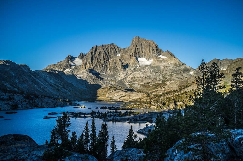 An uneventful night was had with no bear issues. The initial part of the day included the ascent of the first serious mountain pass of the JMT, the Donohue Pass. The views from this pass were stunning and gave a window into the joys to come further along the trail. After a inconsequential second pass of the day, Island Pass, the wonderful Thousand Island Lake was passed. A ranger passed us at Ruby Lake and asked for the only inspection of our trail permit on the whole trail. She very kindly gave us some information on a good place to camp near Garnet Lake using a side trail just before the drop down to the Lake and camping near the top of the Lake, under the Ritter range of mountains. After making our way to the campsite, we then had our first swim of the trip in the cold but wonderful water of Garnet Lake.