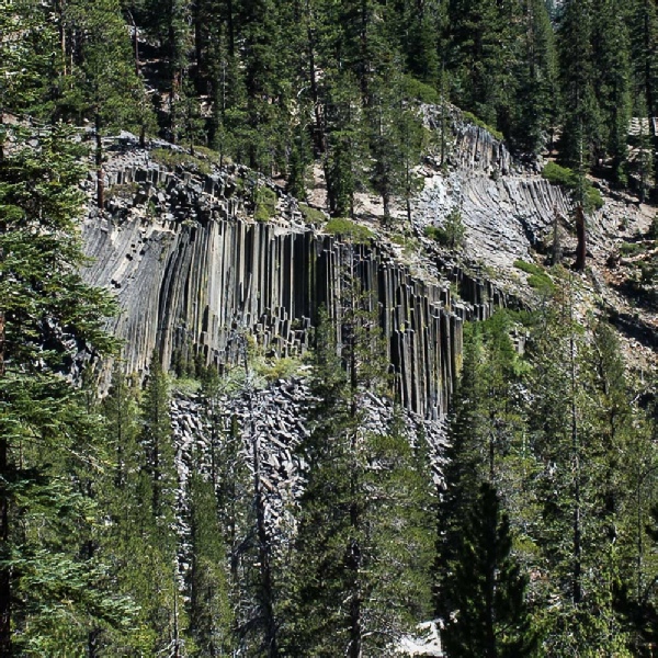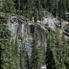 The day was a joy with the JMT threading it's way through some of the best mountain/lake country on the whole of the Trail. Garnett Lake in the early morning is flooded with wonderful light and amazing views of the surrounding mountains of the Ritter range. Shadow Lake was passed early in the morning with stunning reflections in the crystal clear water. Mike decided to check out the water in the lake with a swim as well. A fast long wooded descent saw us down to the Devils Postpile National Monument and a view of the basaltic column structures. Reds Meadow Resort was the next port of call with the very welcome showers and the excellent restaurant.