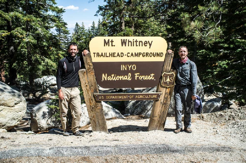 The ascent of the Forester Pass was accomplished early in the morning without too much pain. After taking plenty of photographs, there now followed the incredibly steep, engineered descent down the almost vertical face of the mountain. The rest of the day was a relatively gently walk to Guitar Lake, nestled under the final destination of the John Muir Trail, Mount Whitney summit. A fine mix of woods and meadows kept up the interest levels. A memorable sign was passed on the way indicating 8.3 miles to the top of Mount Whitney. The number of trekkers passed was increasing all the time as we got nearer to Mount Whitney with summiteers returning from their successful expeditions. Finally Guitar Lake was reached and the last camp of the JMT was set up followed by a very wonderful sunset.