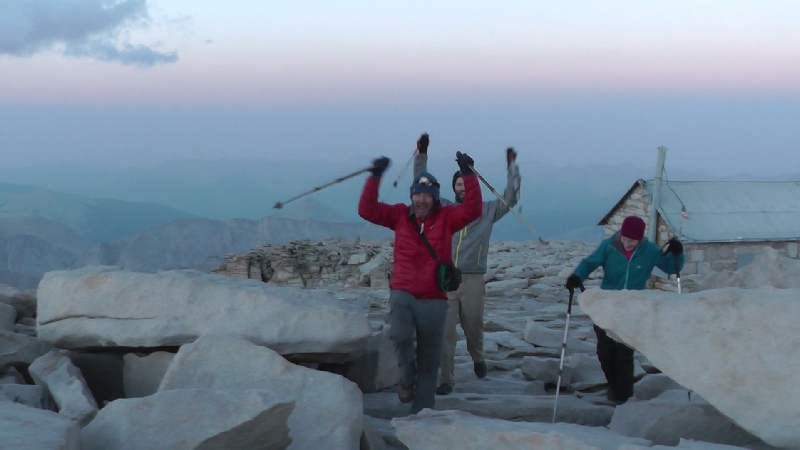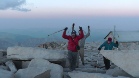 The climb started at about 3:00 in the morning with a quick ascent to reach Trail Junction. At this point the rucksacks were left and the final 1000ft of climbing was accomplished with a great feeling of lightness. The summit was reached just as the sun was appearing through a layer of cloud - a magical moment.  The views from the top were astonishing particularly looking off into the north where we had come from on the days before. After signing the summiteers  book we started our descent. And what a descent with 2000ft of switch backs before the gradient lessened somewhat for the remaining descent to the final destination, the cafe at Whitney Portal.