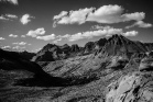 The day started with the long and gentle descent down Le Conte Canyon. This area is a true high spot of the JMT with soaring granite cliffs stretching the length of the Canyon. At the trail junction,  the JMT branched left to the east to ascend the valley in the direction of the Mather Pass. After Deer Meadow, the zig-zag path of the Golden Staircase was climbed to a high shelf and the two Palisade Lakes. We lunched at the lower lake and a good and refreshing swim was had here. The terrain became more rocky and barren as the path wound its way to the top of the Mather Pass at 12,100ft. The landscape to the south looked even dryer and austere as the path zig-zagged down from the Pass. We finally stopped at about 6:30 so as to make camp about 4 miles from Bench Lake.