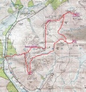 From the car park situated next to the Hotel, the track was taken to the station. The railway line underpass then lead onto the hillside. The bealach between the first and last Munro was the initial aim and this was reached with no real difficulties. Heading south on a fairly easy angled ridge eventually lead to the first summit of the day, Beinn Dorain. The mist was pretty dense at this point so the compass was used to guide the downward trek across some rocky and in some places steep ground towards the Allt Coire a'Ghabhalach. Eventually the track from Auch Gleann was met and followed to the northern side of Beinn a'Chuirn to then across heather to the bealach below Beinn Mhanach. The rolling summit of Beinn Mhanach was easy to find now the mist had lifted. After retracing steps from the summit, the bealach below the summit of Beinn a Chrealchain was the next target. When reached, after a section of pathless and rough ground, a rocky ridge lead to the corrie rim and then finally the summit. Mist again made the navigation interesting and spoilt the views across Rannoch Moor. The descent to the col above Loch a Chreachain was followed by the ascent of Beinn Achaladair and a welcome refreshment stop. Four down and one to go. The mist now cleared in parts to give glimpses of the vast Rannoch wilderness speckled with patches of sun. The bealch at the head of Coire Achaladair was crossed and the final climb to the summit of Beinn an Dothaidh completed. The thought of food from the chip shop in Tyndrum speeded the descent and was very welcome after a long but very satisfying day in the hills. |