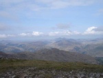 An early 7am start helped get the day off well and the first Munro of the day, Beinn Chabhair, was reached by 9. This was followed by the drop down to the low belach that separates Beinn Chabhair from An Caisteal and Beinn a' Chroin. Rocky outcrops and grassy terraces were traversed on the descent and then the ascent made to the col between the next two peaks. An Caisteal was bagged followed by Beinn a' Chroin. There followed a long long descent to lowest point before the next two munros with a tricky steep ascent through crags and scree to reach to the hogsback ridge between Tulaichean and Ardrain. As usual the time after midday flew by and it took till 3pm to complete both these peaks. The view from Cruach Ardrain was great looking North towards the Ben Lawers ranges and beyond. Any thoughts of descending and reascending Ben More and her sister were dismissed and the long descent down to Crianlarich started. |