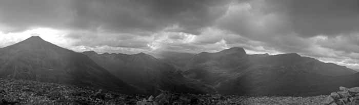 Eilde Mor and the now familar landscape of the Mamore ridge spread out to the West